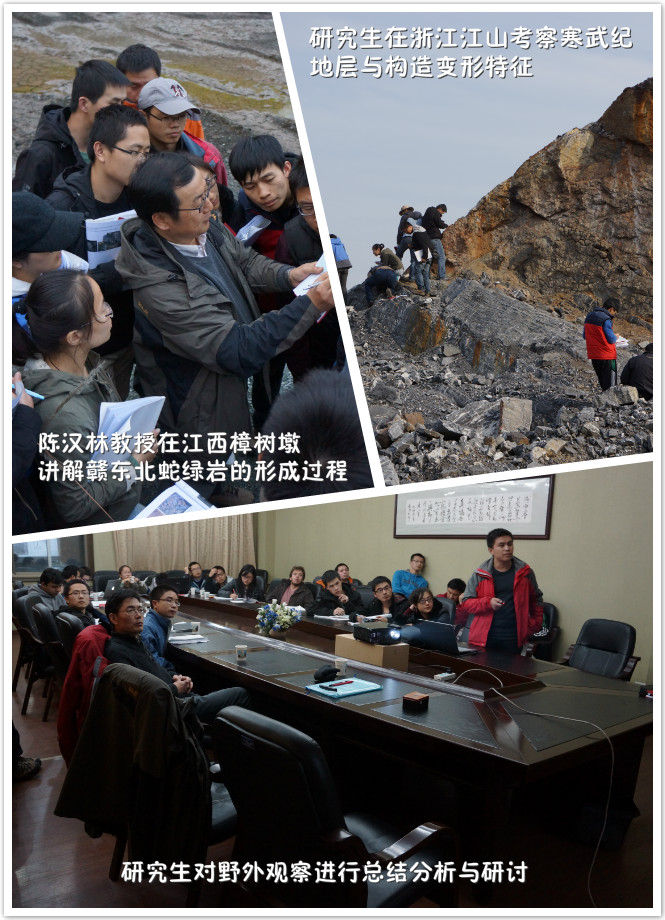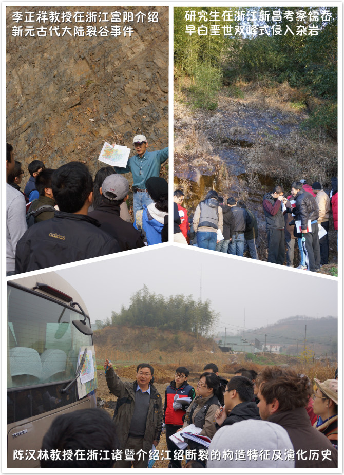 地质学是一门实践性极强的科学,其人才的培养离不开野外实践教学,本科阶段野外实习注重地质观察认识和专业技能的训练,而研究生阶段则更加注重科学思维和综合分析能力的培养。2013年12月7日至12月15日,我系地质学在读硕士和博士研究生等共计25人在浙江和江西进行了为期9天的“华南大地构造野外地质综合实习”。本次实习由澳大利亚科廷大学教授李正祥博士和伟德国际victor1946官网求是特聘教授陈汉林博士担任主讲,同时参加指导的还有章凤奇副教授和孟立丰讲师等青年教师。本实习通过野外露头观察和室内讲座研讨相结合的方式进行,采用中、英文双语教学,注重培养学生的科学思维方法和综合分析地质问题的能力。实习内容涉及华南大陆从新元古代至白垩纪主要大地构造事件及其地质记录。参与实习的研究生普遍反映实习内容前沿、新颖、系统、丰富,对理论知识的巩固、地质思维能力的培养以及今后的研究工作都有很大的帮助和启示。
