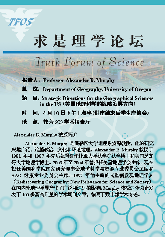关于美国俄勒冈大学Professor Alexander B. Murphy的报告通知