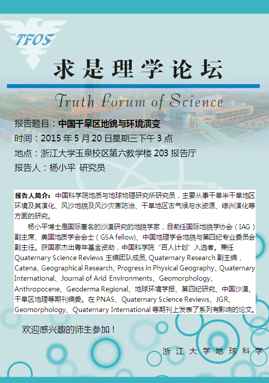 关于中国科学院地质与地球物理研究所研究员杨小平的报告通知