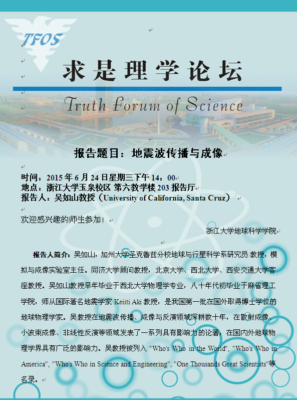 加州大学圣克鲁兹分校地球与行星科学系吴如山研究员报告通知