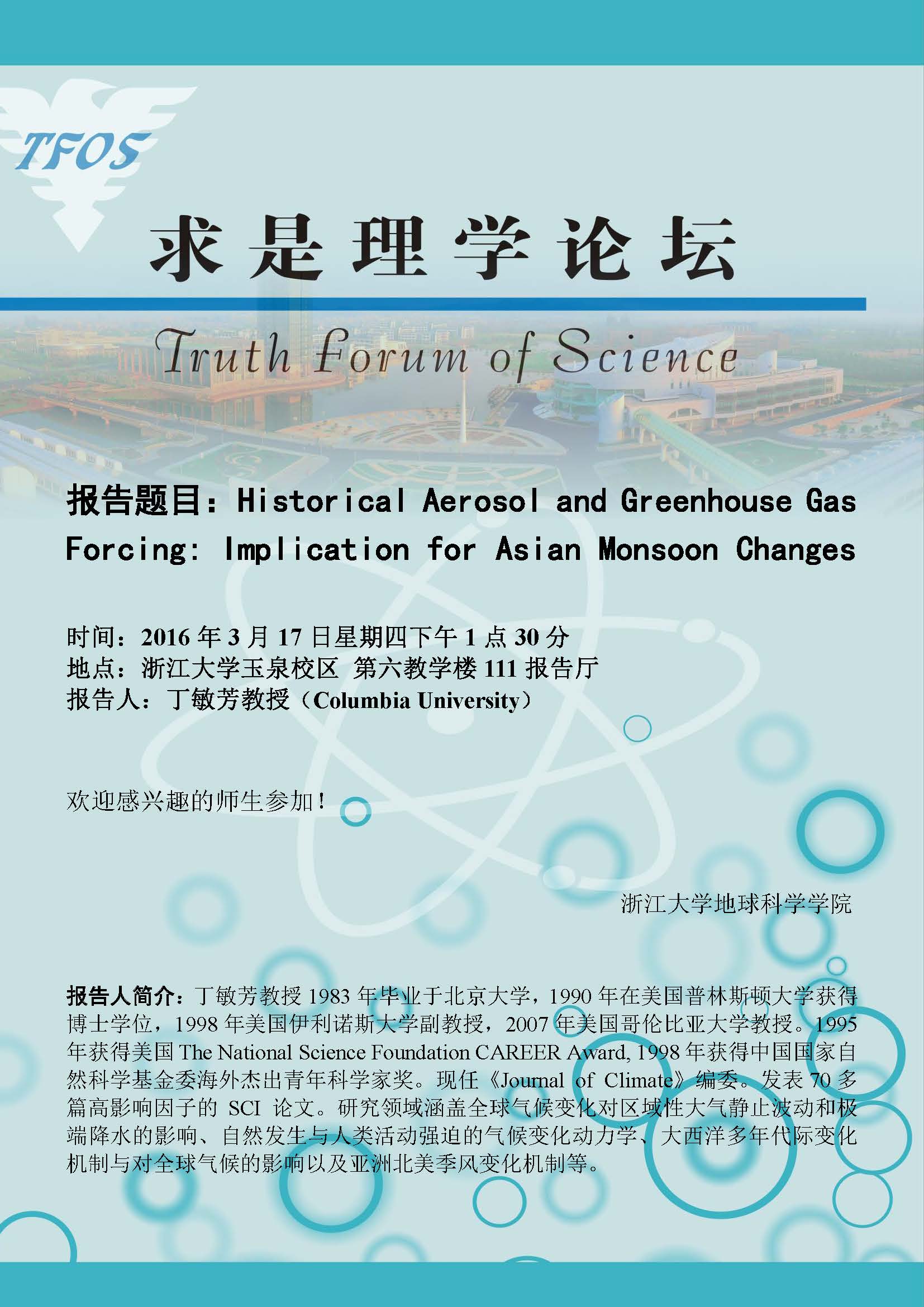 求是理学论坛――丁敏芳教授学术报告通知