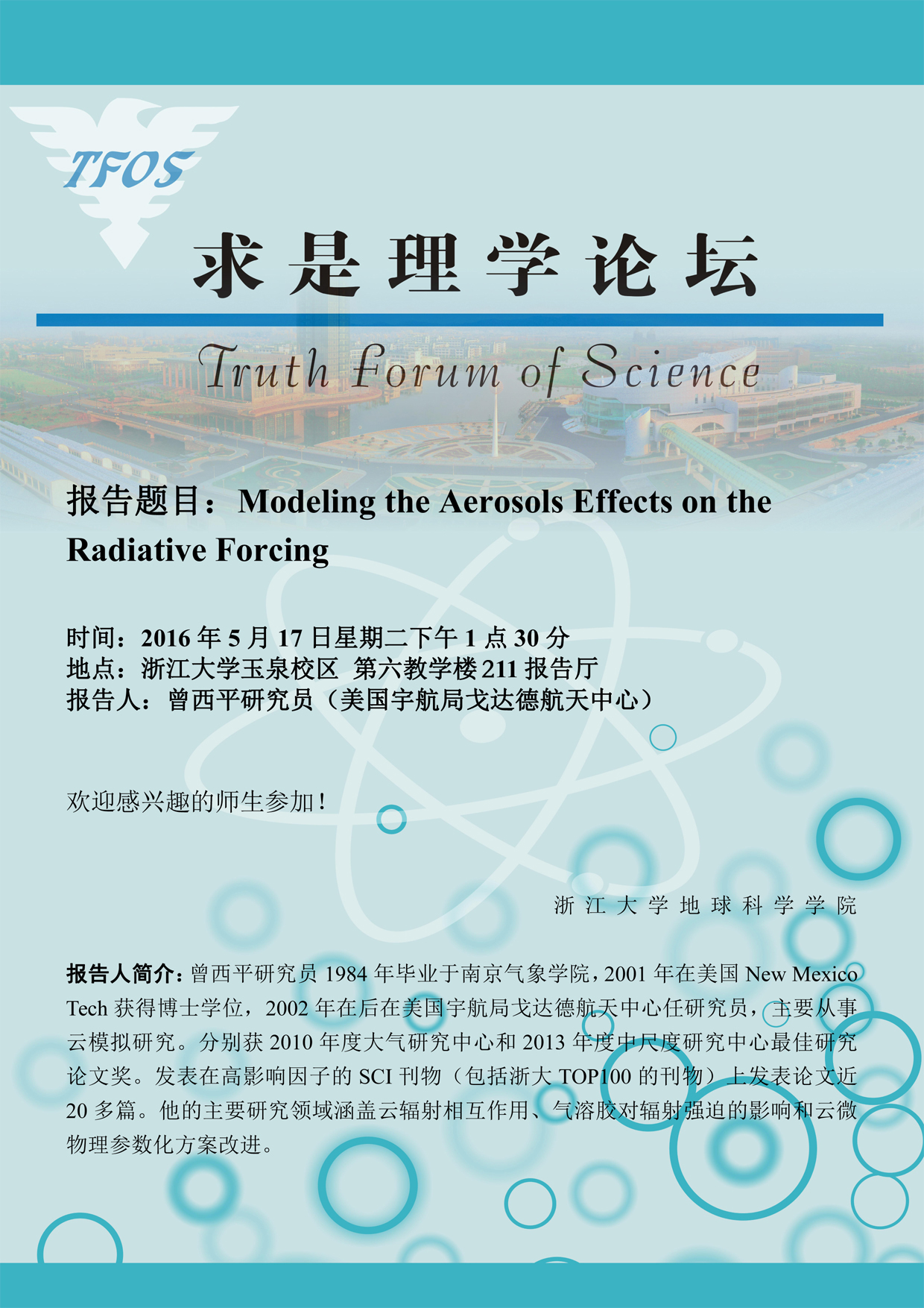 求是理学论坛――美国宇航局曾西平研究员学术报告通知