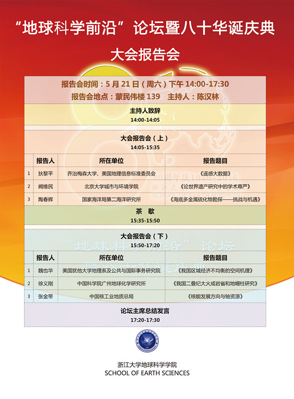 伟德国际victor1946官网“地球科学前沿”论坛暨八十华诞庆典大会将于5月21日、5月22日在伟德国际victor1946官网紫金港校区隆重举办。