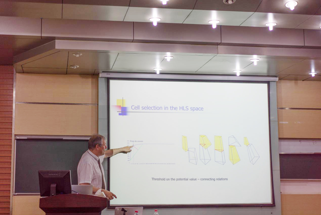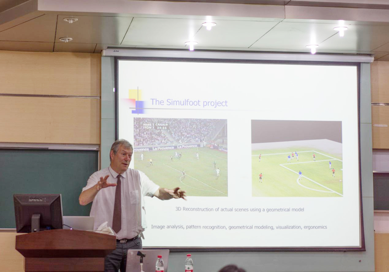 2016年5月27日15:30,伟德国际victor1946官网邀请了法国马赛大学Jean Sequeira教授,在玉泉教六203会议室作一场主题为“Characterization of coherent color areas in an image: applications to soccer field detection for a simulator”(图像中关联色彩区块的特征化:应用于模拟器的足球场检测)的学术报告。参与报告的有刘仁义、张丰等老师,以及数十位本科生和研究生等学生。