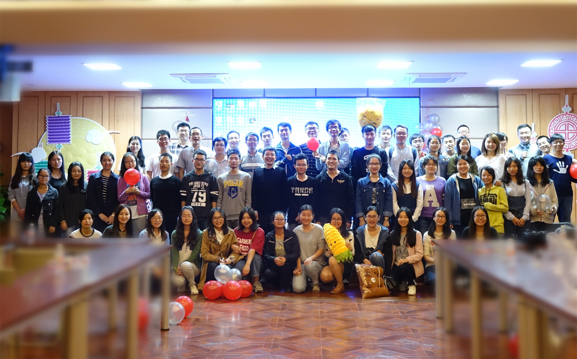 晚会尾声,研博会于晓东同学上台为大家揭示这次晚会的主题——谓我何求。“知我者谓我心忧,不知我者谓我何求”出自诗经中的《黍离》篇,跟竺可桢老校长的两个问题有异曲同工之妙。在这里,也是在浙里,我们终将会成为新的浙大人!活动组织者为大家准备了新生寄语,并将寄语放置在活动会场布置的气球中,由同学们会后带走气球珍藏寄语。最后,晚会在“同一首歌”全体合唱直播节目中顺利落下帷幕,大家纷纷上台,留下了这张地科大家庭的温馨合影。