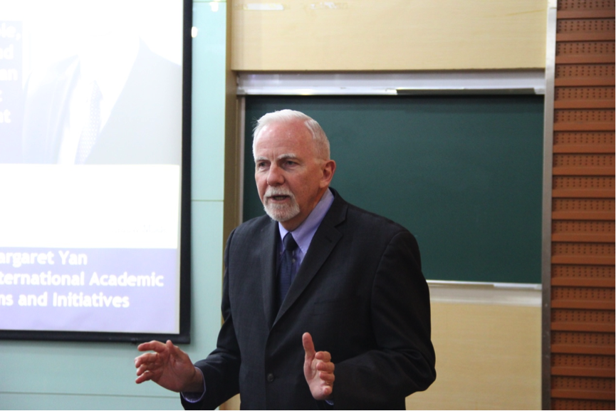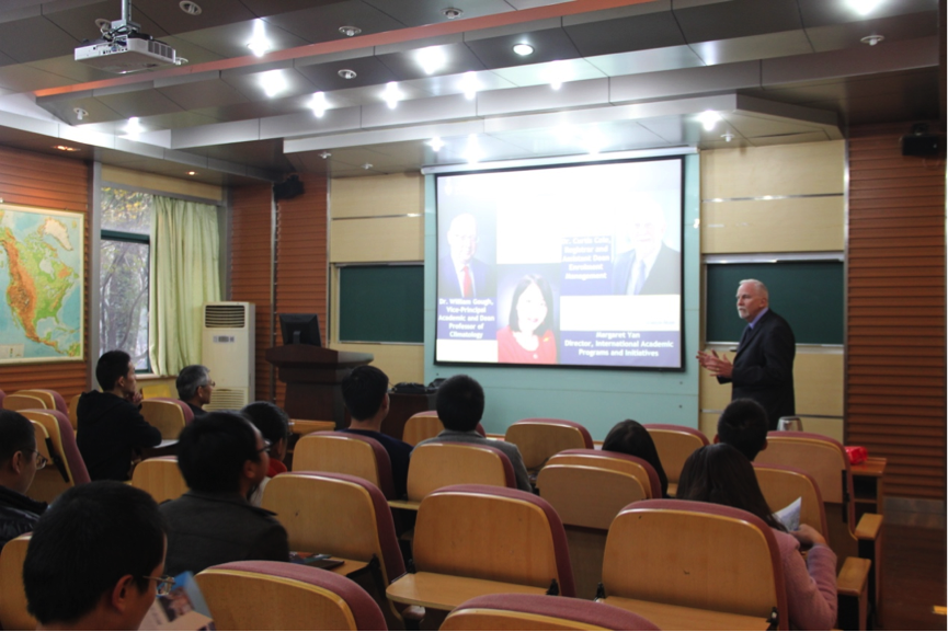2016年12月9日,加拿大多伦多大学士嘉堡校区助理教务长兼注册办公室主任Curtis Cole博士、国际学术办公室环境科学研究生项目主管翟羽博士一行到访我院,在玉泉教六203报告厅介绍了多伦多大学为期14个月的环境科学硕士研究生项目。
