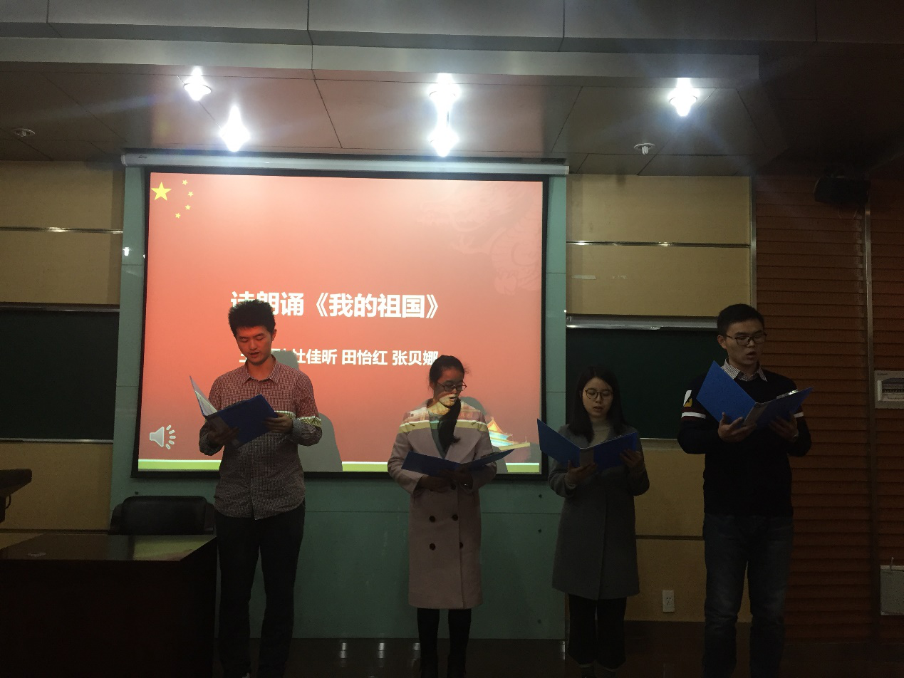 诗朗诵《我的祖国》将整场活动的气氛推向高潮,同学们富有感情的朗诵让在场的同志们深受感动,为自己是一名中国人而感到骄傲。