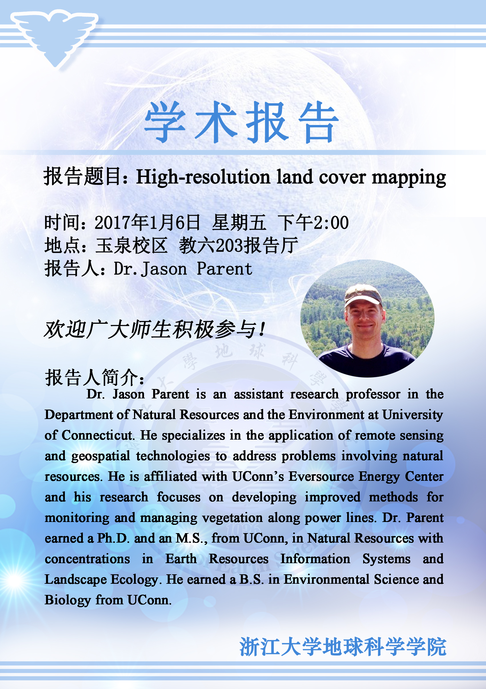 Dr. Jason Parent 学术报告通知