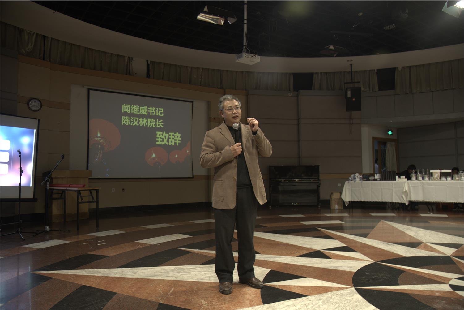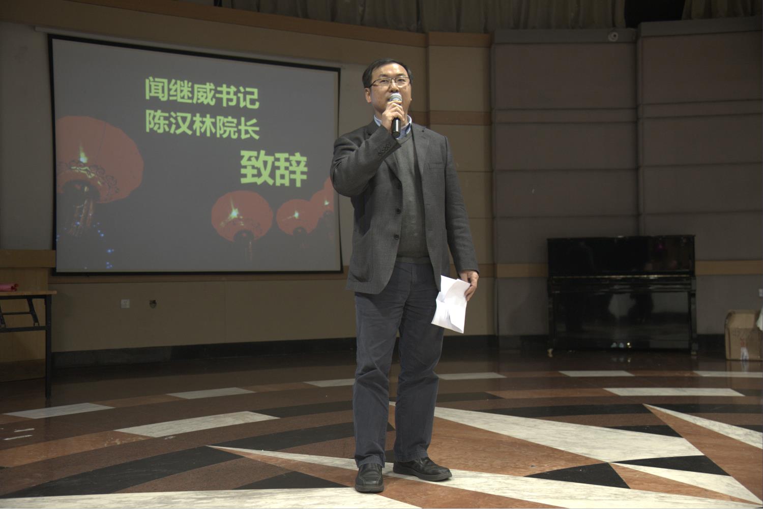 晚会首先由学院领导陈汉林院长和闻继威书记致词。陈院长回顾了2016年学院的发展和取得的成绩,又畅谈起对2017年的展望。闻书记给学生们带去了新年的祝愿,动情的致词后还与同学一起合唱了歌曲《你最珍贵》。