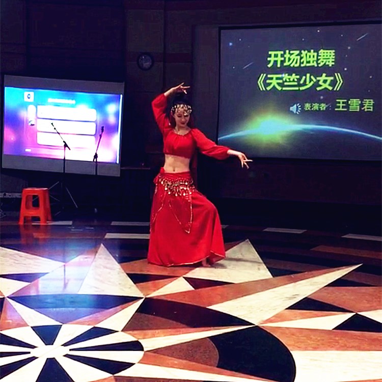 古典的音乐,婀娜的舞姿,王雪君同学带着异域风情的舞蹈《天竺少女》拉开了整场晚会的序幕。