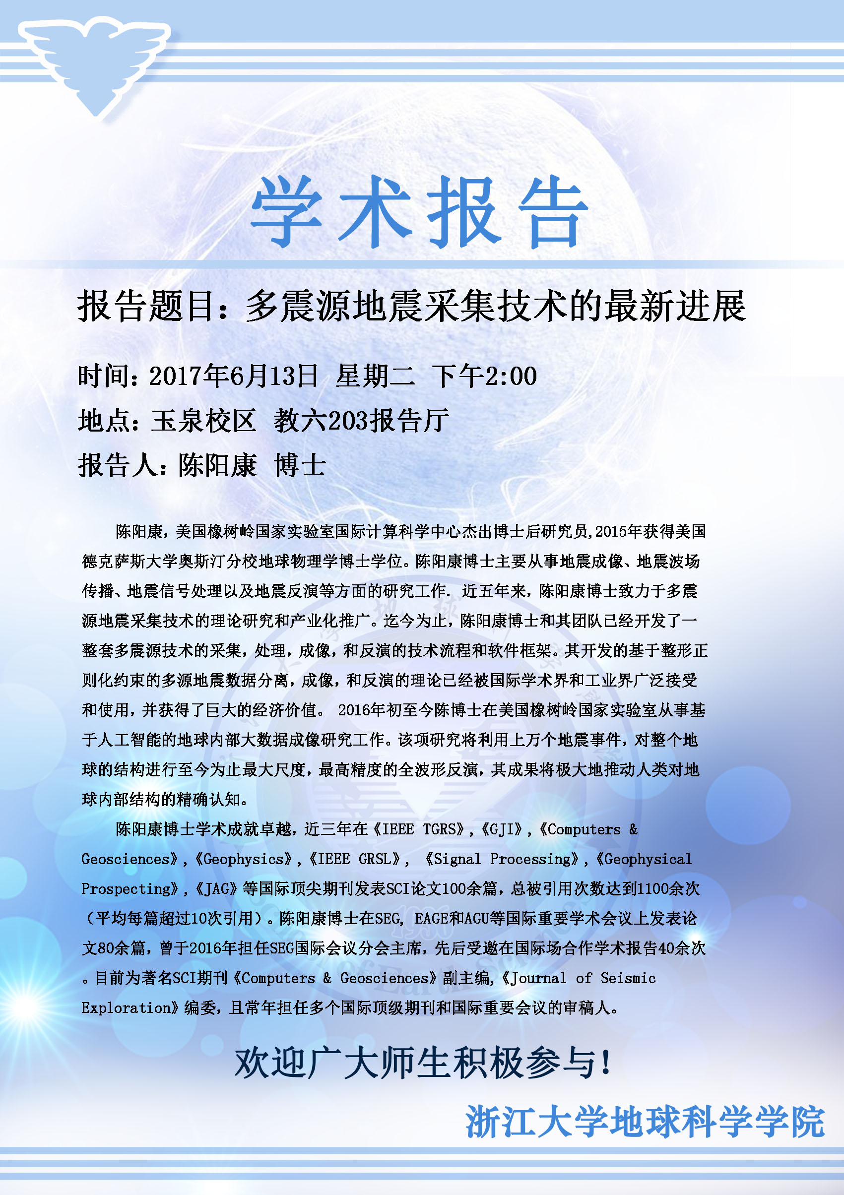 美国橡树岭国家实验室国际计算科学中心陈阳康博士后研究员学术报告通知