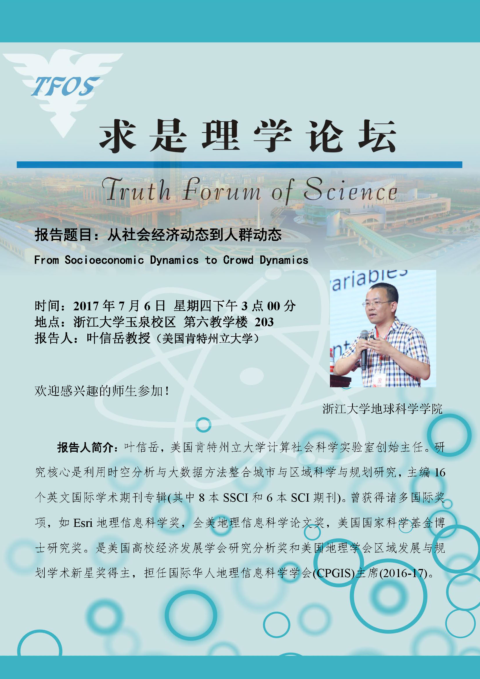 求是理学论坛――美国肯特州立大学叶信岳教授学术报告通知