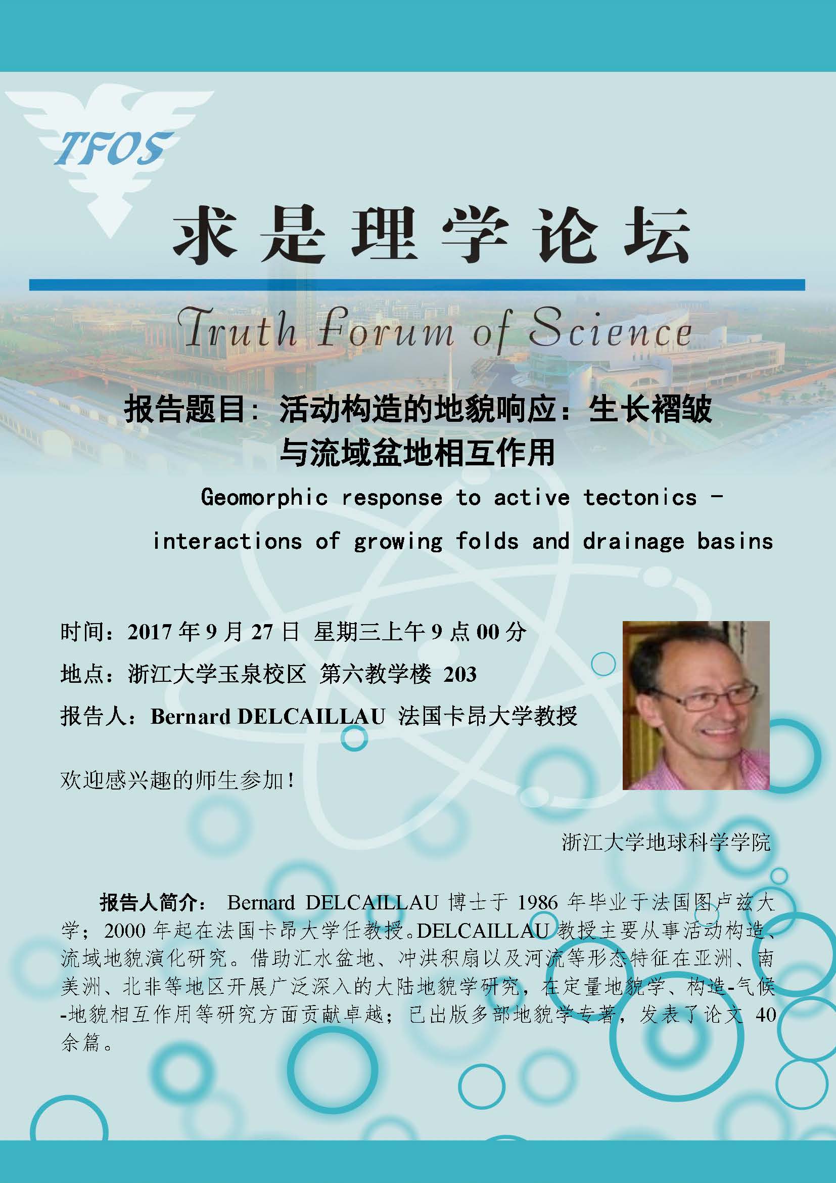 求是理学论坛――法国卡昂大学Bernard DELCAILLAU教授学术报告通知