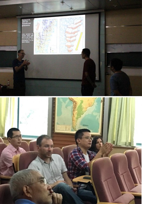 报告结束后,Bernard DELCAILLAU教授与在场师生就报告内容、流域地貌演化、活动构造变形等问题展开了热烈的讨论,并商谈进一步加强与我院教师开展合作研究。此次报告内容丰富,思路清晰,形象生动,引起了广大师生对构造地貌学相关研究的兴趣,也起到了很好的学术交流效果。