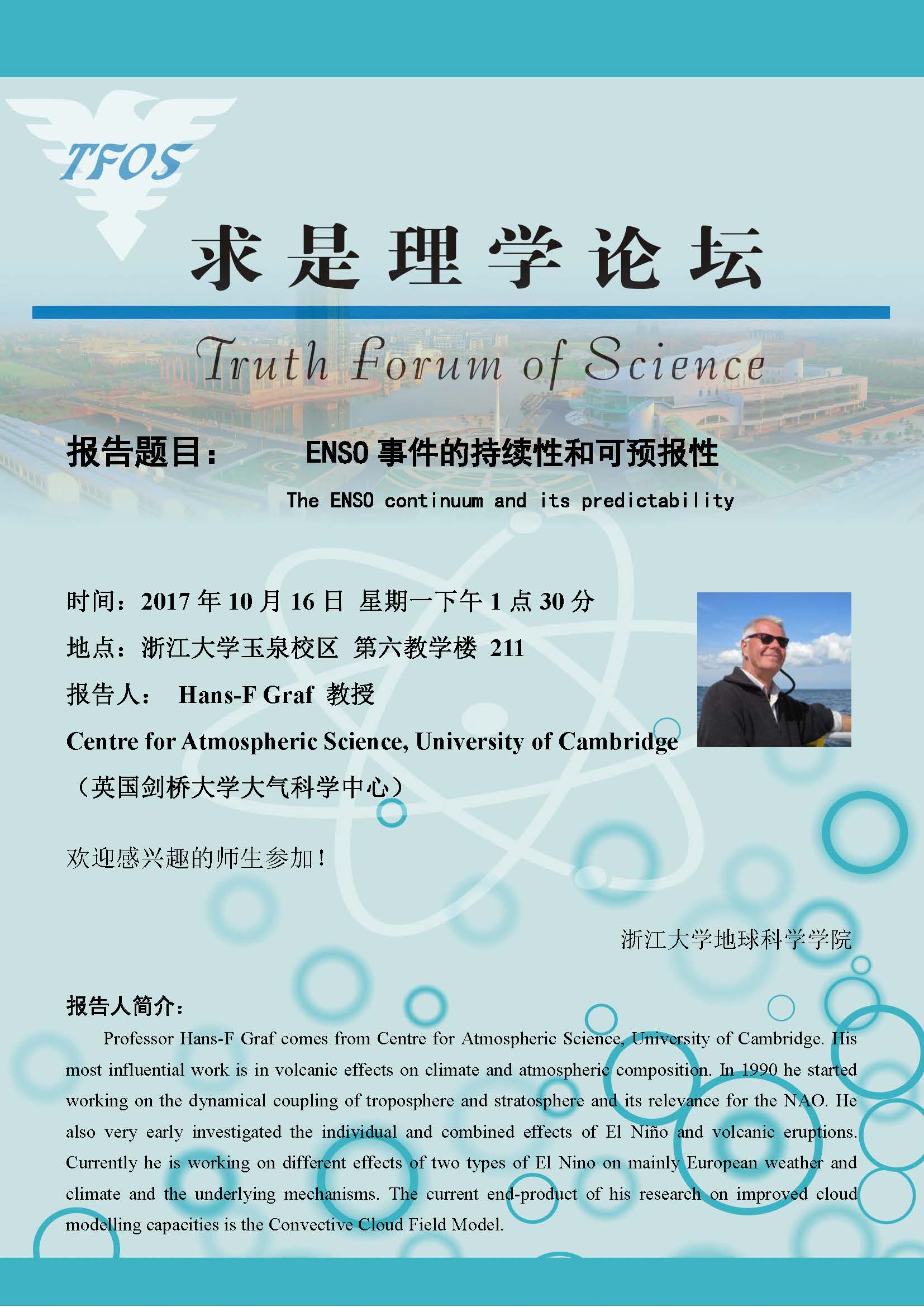 求是理学论坛――英国剑桥大学气科中心Hans-F Graf教授学术报告通知