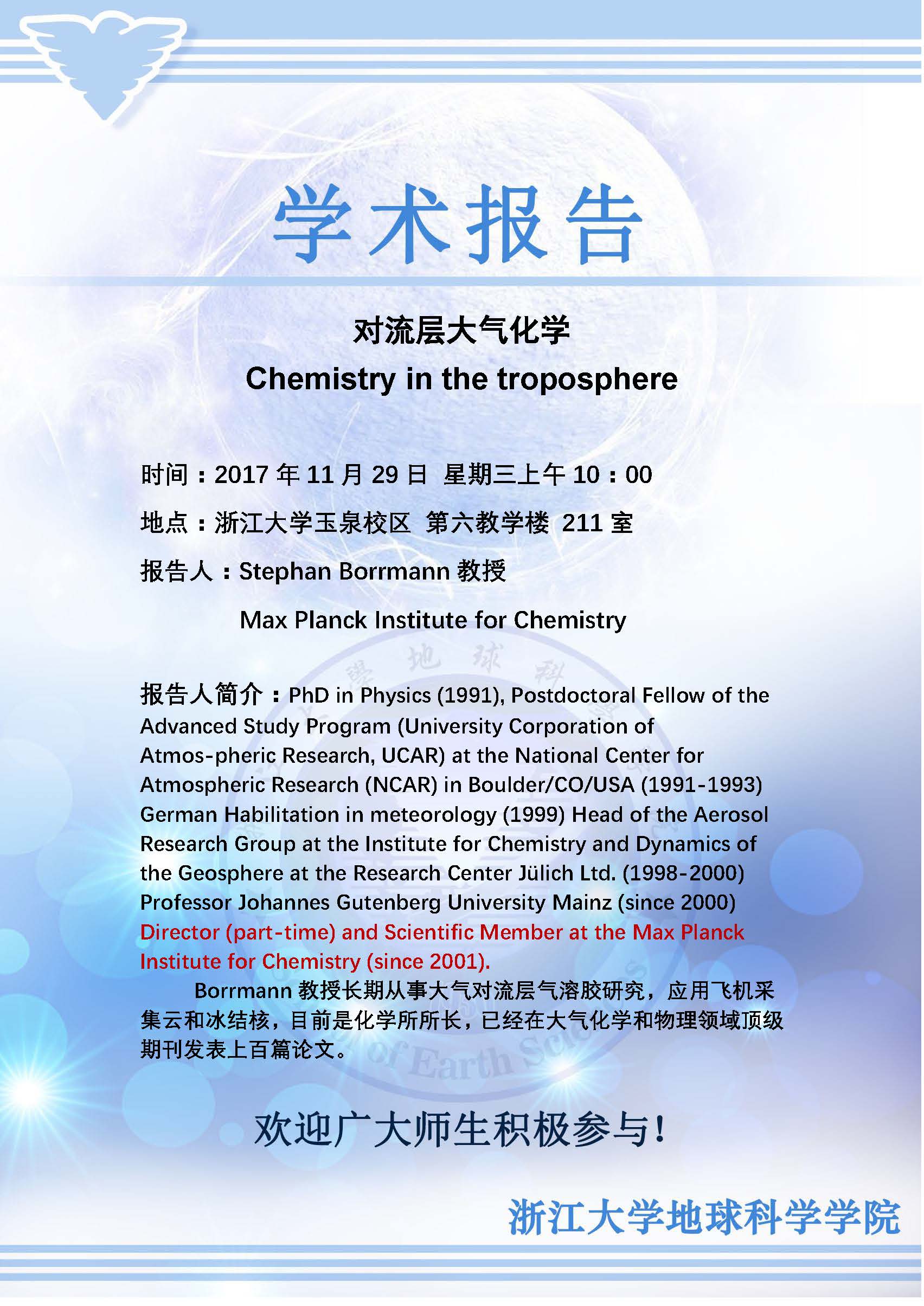Max Planck Institute for Chemistry Stephan Borrmann教授学术报告通知