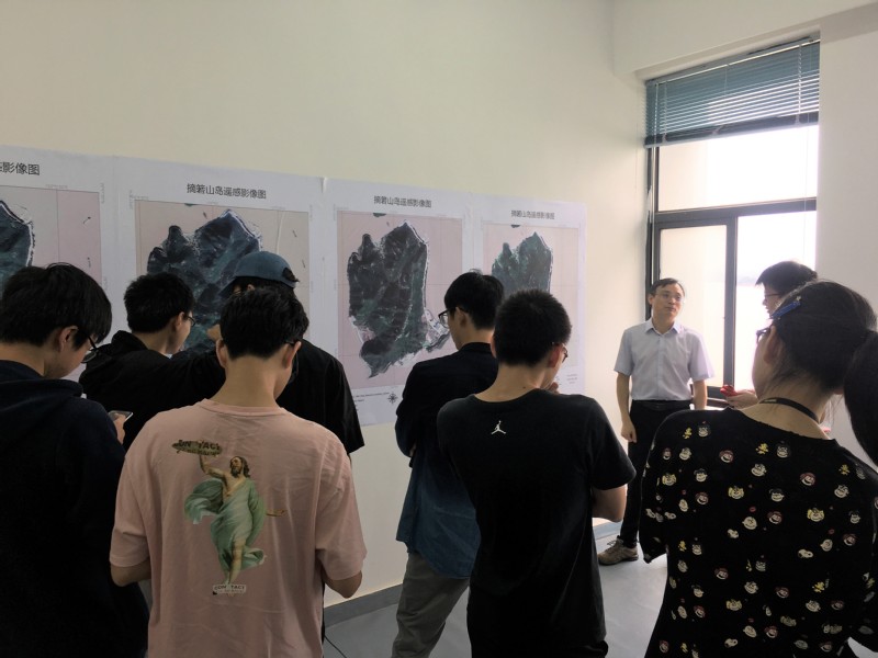 晚间,邹乐君老师在海洋试验站的海洋科普与科技展示厅对科技岛正在进行的项目进行了介绍,并从遥感的角度让同学们思考卫星影像解译的实际情况。结合这些内容,同学们于第二天清晨参观了岛内的科技项目,并进行了遥感野外调查,目的是观察在卫星影像中的地物在地表的形态和样貌。