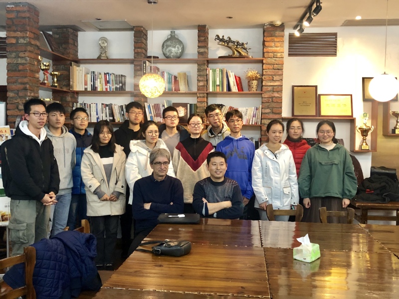 在学生与教授交流提问环节,教授对如何做研究,以及出国后如何适应的经验与同学们做了分享,同学们都表示有收获,很开心,最后所有参加报告的学生们和Mihaly教授拍了合照。