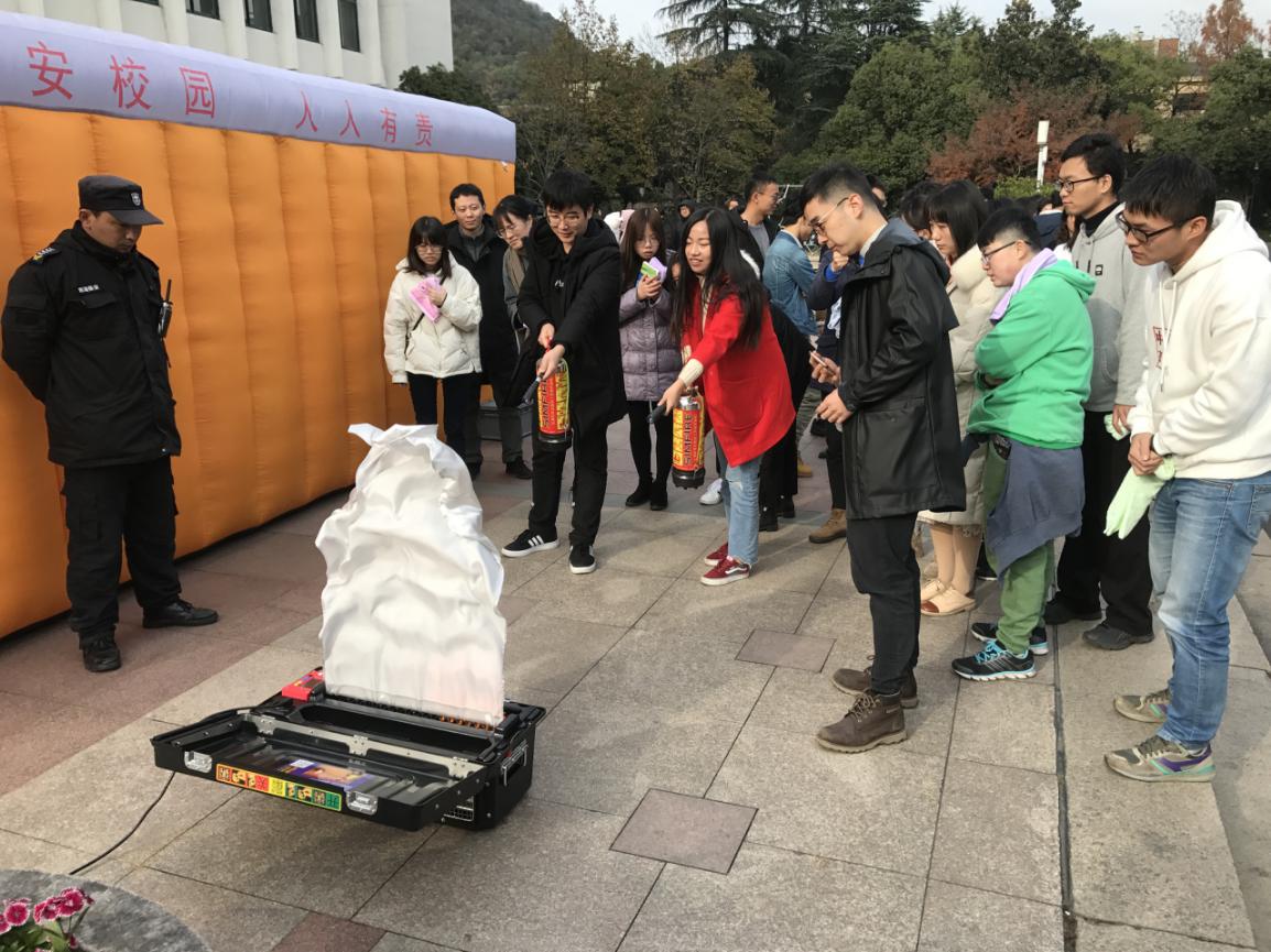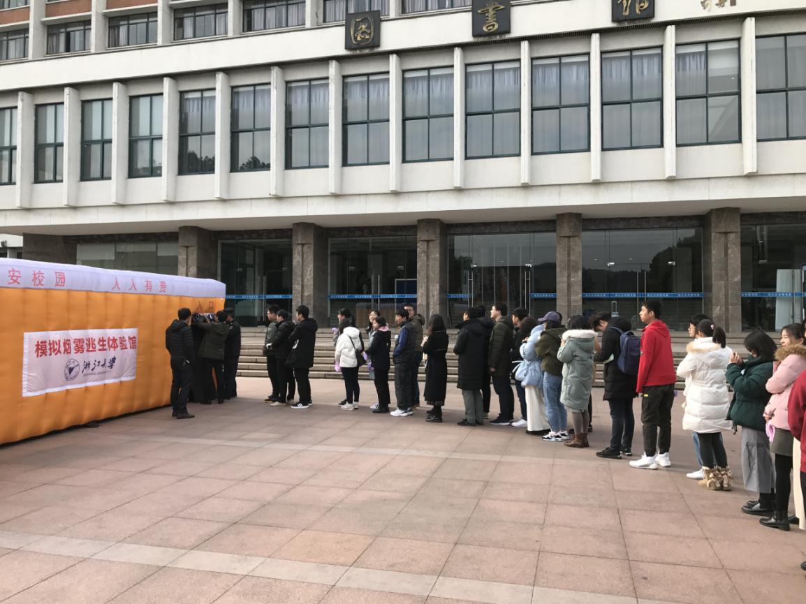电子灭火器操作和模拟烟雾逃生体验环节,学院师生有机会学习如何正确使用灭火器灭火,如何在能见度低的情况下沿安全标志指示路线逃生,大家参与热情高涨。