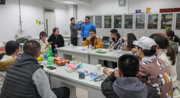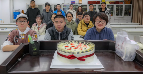 在“集体生日会”环节中,主席团按照团学联成员的生日顺序精心安排了座位,并且准备了写有每个团学联成员的名字和生日的蛋糕。