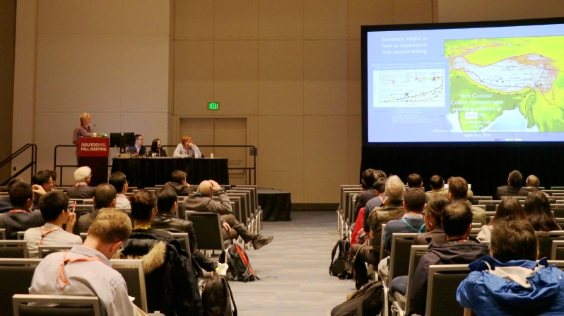 伟德国际victor1946官网构造地质学团队陈汉林教授作为主召集人,召集了专题《Circum-Tibetan Plateau Basin and Orogen Systems: Archives of Tectonic Deformation and Surface Processes》,包括两个口头报告专场(T53A、T54A)和一个展板报告专场(T51D)。该专题的召集人还有欧洲科学院院士、瑞士联邦理工学院教授Sean Willett、俄勒冈州立大学教授Eric Kirby以及伟德国际victor1946官网百人计划研究员石许华。该专题获得了国内外专家学者的热烈响应,包括美国科学院院士、休斯敦大学教授John Suppe在内的多位国际著名专家和青年学者向本专题投稿了口头报告或展板,提交的摘要总数排名2019 美国地球物理年会构造物理学部分(Tectonophysics Section)约50个专题的前10。