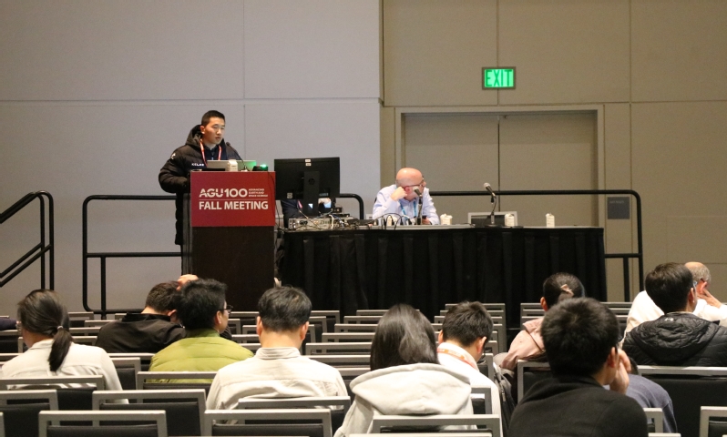 图6 法国雷恩大学李林博士做口头报告“Evolution of the Pamir Salient: New Sedimentological and Paleomagnetic Constraints From the Southeastern Tajik Basin”