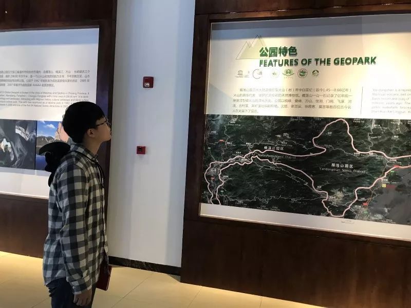 在实地考察前队伍先前往极具价值和意义的实习基地——雁荡山博物馆进行参观学习。同学们通过博物馆中的各种模型标本和文字介绍对雁荡山的总体地质情况有了大致的了解,在岩石展厅里,陈列着水晶洞、玛瑙等极具观赏价值的岩石,一开始就激起了同学们浓厚的兴趣。同学们仔细观察着每一块岩石标本,认真地对比两块标本之间的不同。参观过程中带队老师们详细的解说和问答互动更是为同学们扫清了理解上的障碍,相关的概念也更加明晰起来,为之后的实地考察打下了一个良好的理论基础。