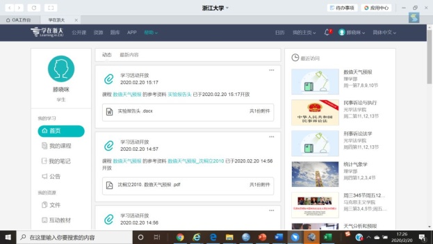 “目前几次基于钉钉和学在浙大的试讲而言,基本是能够满足教学所用的,但仍然延迟等问题,这在正式上课时会损耗时间,影响师生间的交流。网络学习对于师生都是挑战,我们要尽快适应这一学习方式,保证准时参与直播和集中注意力学习,将状态调整好,自主学习时还需自律。这既是挑战,又是机遇,我们应积极化不利为有利。”