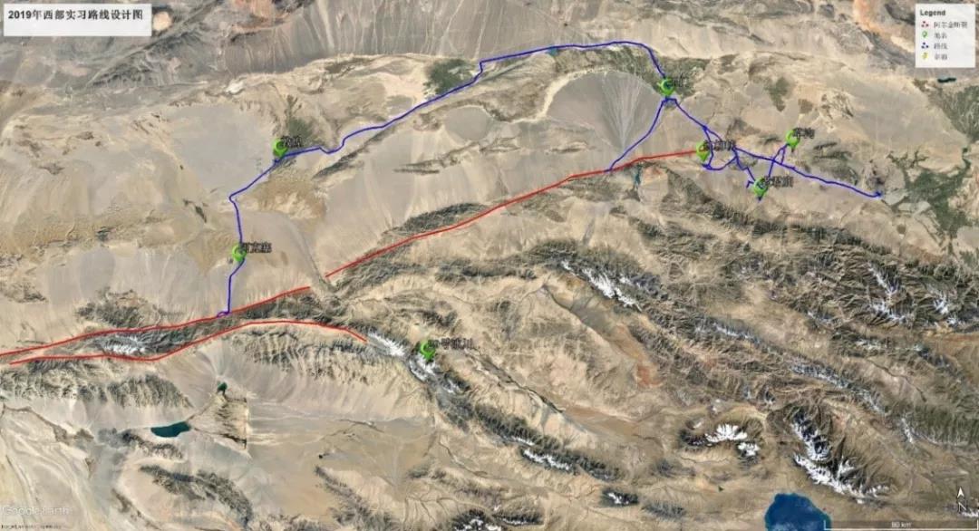 这一阶段重点关注阿尔金断裂左旋走滑、祁连山造山带的冲断变形以及二者之间的应变分配关系。老师们选取了老阿克塞县城、玉门二家台以及老君庙背斜作为该阶段的实习点,主要利用构造地貌的思想,认识阿尔金断裂左旋走滑速率在走向上的变化和北祁连冲断带的变形方式,再根据二者的几何形态分析它们的相互关系。
