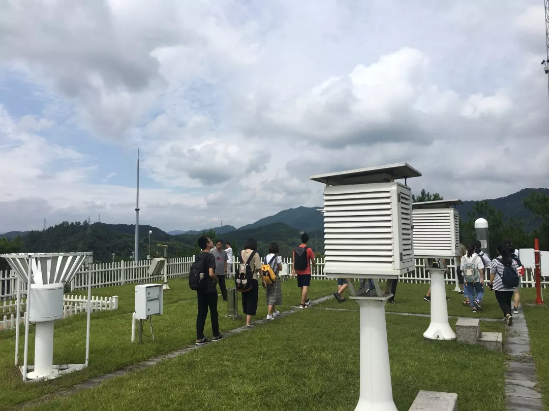 7月15日,我们从紫金港校区出发来到安吉,在工作人员介绍下参观了安吉观测站历史上使用过的观测仪器。浙大校友张莹为我们讲解了安吉在不同季节常见的气象灾害类型和产生原因。春季主要是强对流天气引起的冰雹等短时气象灾害;夏季由于安吉独特的东北开口的山脉走向,易受台风影响形成暴雨、山洪等灾害;秋季也易受台风影响,而加上秋季北方冷空气南下,与台风共同作用,更易产生严重的破坏;冬季安吉则与浙北大部分地区一样易受雪灾影响。除此之外,同学们还参观了安吉发展的特色生态气象项目以及与南京信息工程大学的合作项目,即通过遥感、计算机等方法获得气象资料。
