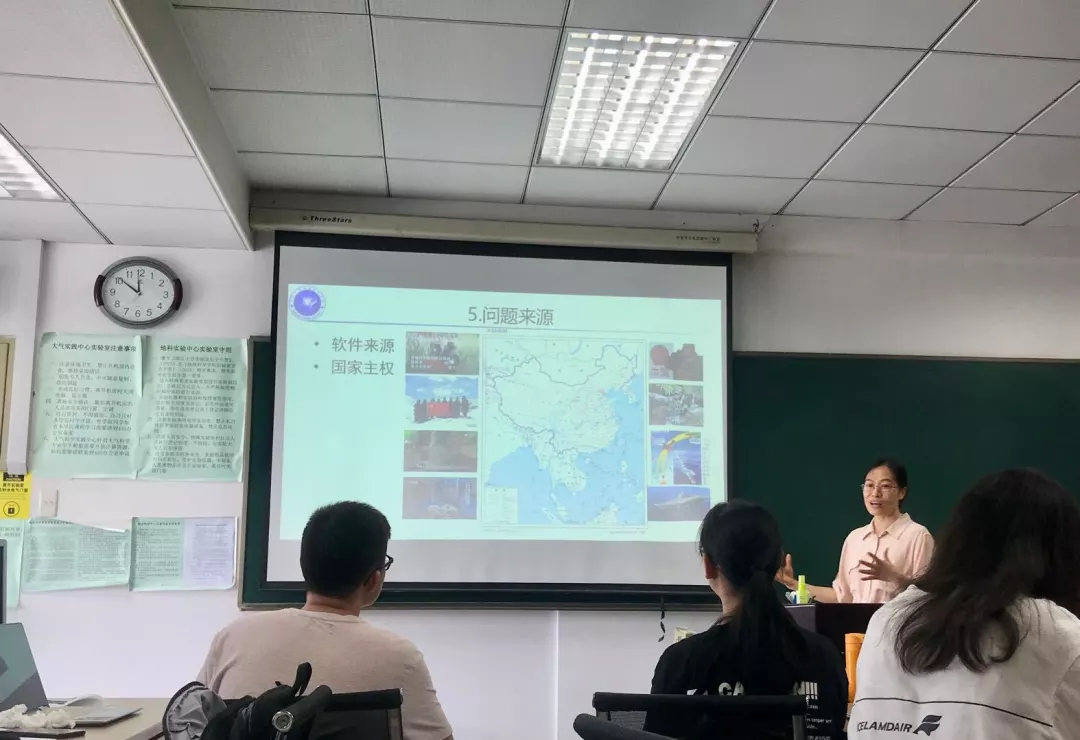 朱老师在教学的过程中还指出了与专业紧密相关的保密事宜和国家主权问题。她强调,我们的一些实践分析天气图是属于内部资料,同学们应当具备保密意识,不应在任何情况下泄露资料,并为我们讲述了在气象资料出版时在地图形制上的要求。在课题研究工作中,我们也发现了软件使用的底图以及相当部分的shapefile在国家边界划分上存在许多问题,比如在台湾、藏南、九段线方面等都出现了错误。由于大气是全球连续分布且不断运动的,所以在分析气象要素分布图时,一般使用地形或者单纯的海岸线地图作为底图,不涉及政治区划。一旦需要使用时,应充分关注底图边界等涉及国家主权的问题。同学们从这件身边事上认识到,一方面只有自身强大,开发我们自主知识产权的应用软件,才能在国际上发出中国声音;另一方面则是要明确指出错误之处,修正存在的错误,坚决维护我国主权。我们大学生要努力扎实基础,练就过硬本领,立志为提高我国的科技水平贡献力量。