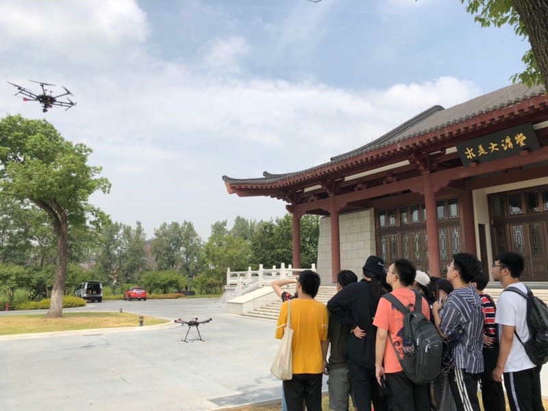 外业实习的最后一天,同学们在汪愿愿老师和浙江中海达空间信息技术有限公司的工程师的带领下,在求是大讲堂前进行M600 Pro无人机试飞。试飞结束后同学们用无人机拍摄了合照,给本次短学期画上了一个圆满的句号。