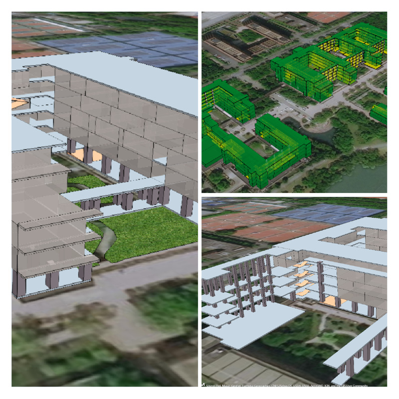 外业实习中同学们以四人小组为单位,使用北斗RTK设备对紫金港校区西一至西四建筑进行数据测量。实习过程中,同学们追求完美,精益求精;与此同时,也积极解决测量中遇到的困难,当接收机定位困难时,耐心地调整并适时有所取舍。