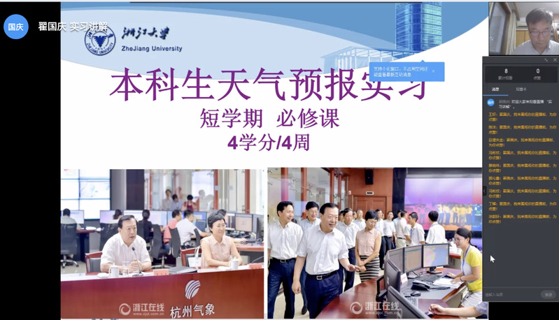 出发前,翟国庆老师通过钉钉直播的形式强调,本次实习的目的是让同学们巩固课堂所学的天气学理论知识,初步掌握天气分析预报的基本技能,将理论知识与实际相结合,培养独立从事天气预报的基本能力,同时翟老师还向同学们提出了本次实习的具体要求和注意事项。