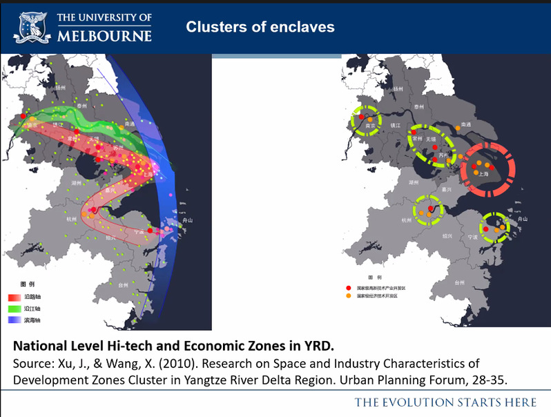 他对核心概念——“飞地”做出了阐释,将“飞地”与城市规划中传统的聚集概念对比,更加生动地解释了“飞地”的内涵与特点。同时,考虑到自1984年以来中国城市空间扩展的发展历程,开发区在此期间快速扩张,以及改革开放初期超过一半的外商直接投资流入了5个早期经济特区中国,特别是长江经济带,是研究“飞地型”城市化作用的最佳地区之一。