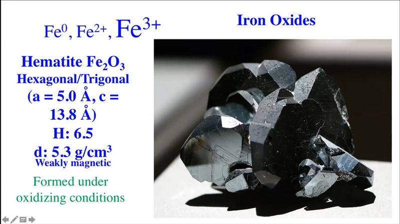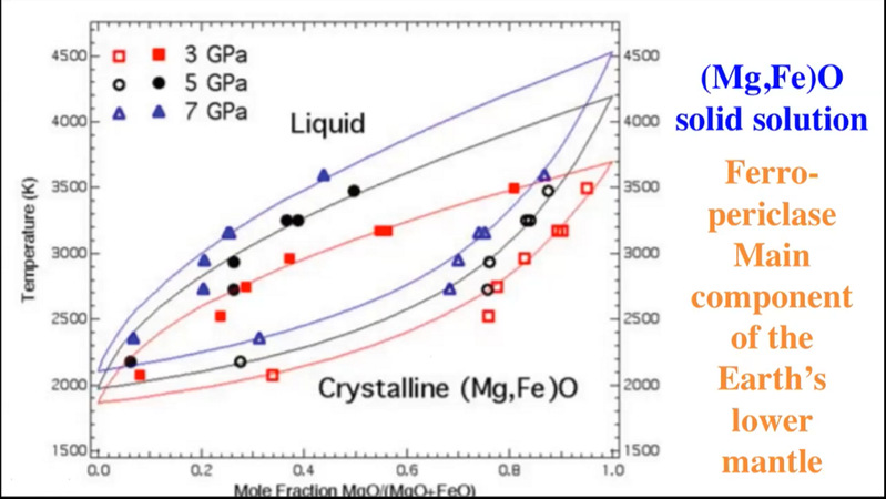 接下来,他又介绍了氧的主要矿物载体——各种含氧矿物,包括:氧化亚铁、氧化铁、氧化镁等的晶体属性,镁铁混合氧化物的固液相线,以及其他氧化物和氢氧化物的性质和作用。最后,以含铁氧化物为例,向大家介绍了铁矿与人类发展间的关系。