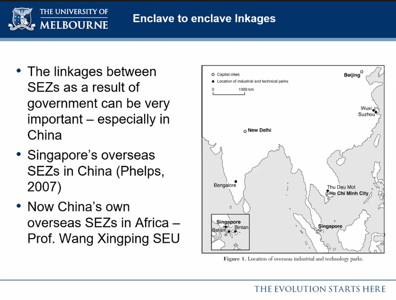 接下来,他介绍了“飞地型”城市化与城市经济集聚中的多中心现象之间的联系,并提出了“飞地群”的概念。他讨论了飞地直接可能存在的各种联系,并指出这种联系可能是非地方性的,主要包括企业内部联系、组织内部联系以及政策联系。同时,他对相关文献进行了回顾,强调了政府和政策对于塑造中国经济特区之间联系的重要作用,并对未来研究的方向与目前研究中存在的问题进行了简要说明。