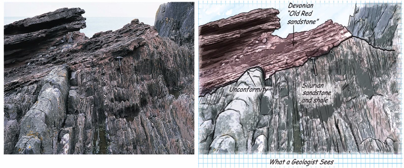 Marshak教授从詹姆斯·赫顿的一个问题开始引入,为同学们讲解了不整合的概念和三个类型,即平行不整合(disconformity)、角度不整合(Angular unconformity)、非不整合(nonconformity),同时详细阐述了不整合对确定地质年代的重要性。