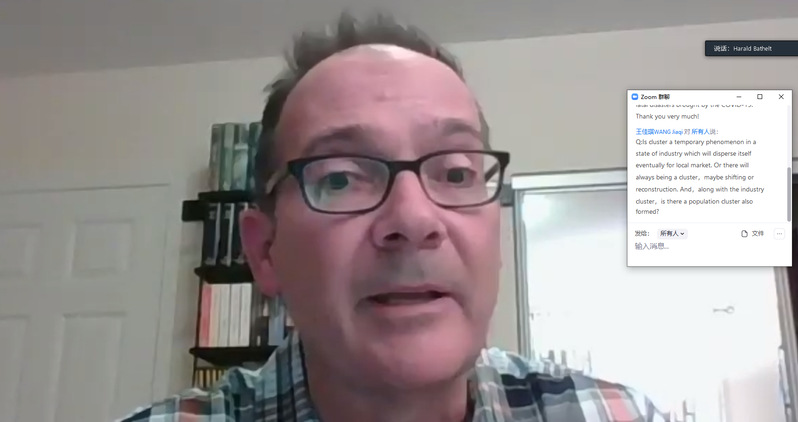 在最后的问答环节,同学们结合当前全球疫情背景下产业集群的优劣势、产业集群的演变过程和影响等提出了问题。Bathelt教授一一解答了同学们的问题,并赞赏了同学们的求知精神。