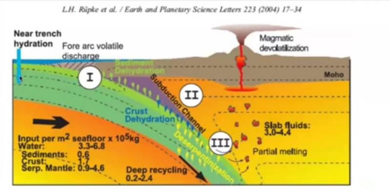 随后Hirschmann教授讲解了水循环和碳循环。他向同学们展示了在不同地幔部分的水浓度图,分析了不同水浓度对于岩浆岩性质的影响以及水是怎么再次进入地幔之中。在碳循环的讲解中,Hirschmann教授同样也是用整体的循环图来展示整个循环过程,再进行更细致的讲解。