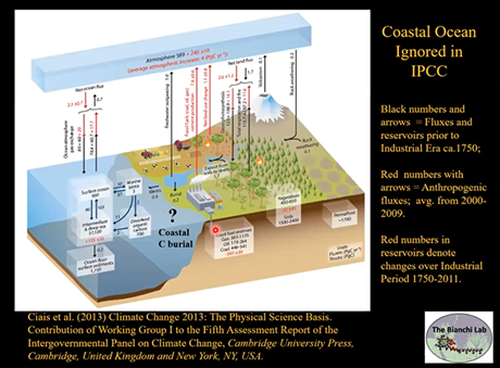 Bianchi教授对于河口海岸带碳循环过程,在世界各地都有过深入研究。他简要地介绍了其在不同地区的研究成果中一些有趣的现象和事实。