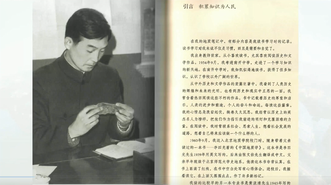 老师还带领我们学习了温家宝的地质笔记,我们从笔记中艰苦的野外地质工作,前辈地质学家坚韧的意志与细心的作业,感悟到不畏艰苦、甘于奉献的地质精神以及苦中作乐,这些独属于地质人的浪漫情怀。温家宝在笔记中说:“只要有目标,即使路再长再远,山再艰再险,也得咬紧牙关走下去。”他对地质工作的深厚情感,呈现在野外记录本上的地质功底和严谨的工作态度,值得我们学习。