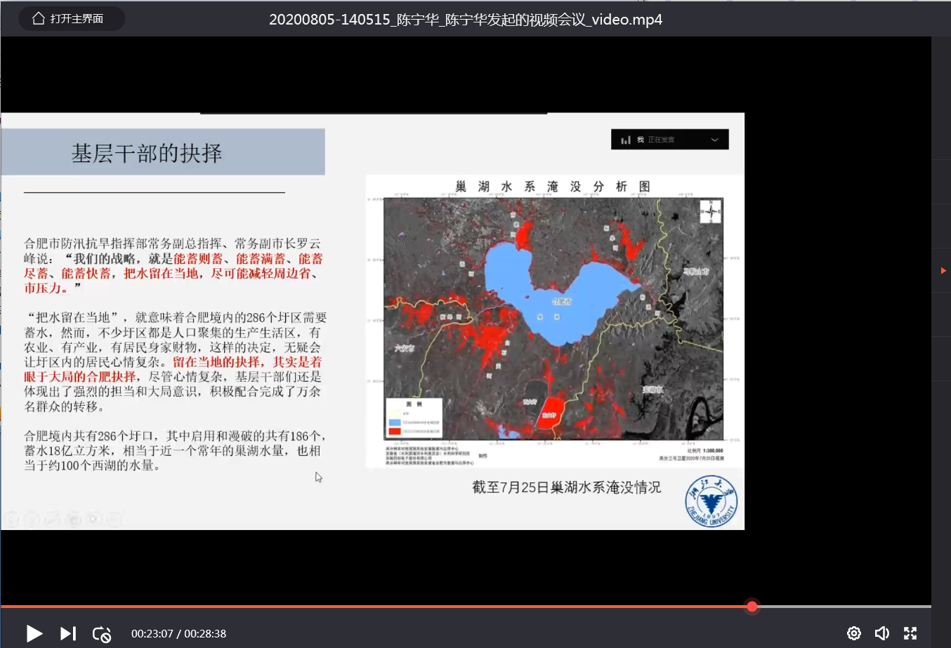 雷钰薇同学谈到了巢湖地区抗击疫情和洪灾的工作。疫情面前,国家、各行各业的工作人员、民众都采取了防疫措施。而这次洪涝灾害,范围、受灾人次上升,但死亡失踪人数和倒塌房屋数量却是下降的。看到新闻里抗灾期间老人为抗洪战士扇扇子、送鸡蛋等举动,感到非常庆幸我们生活在这样一个充满爱与幸福感的国家。