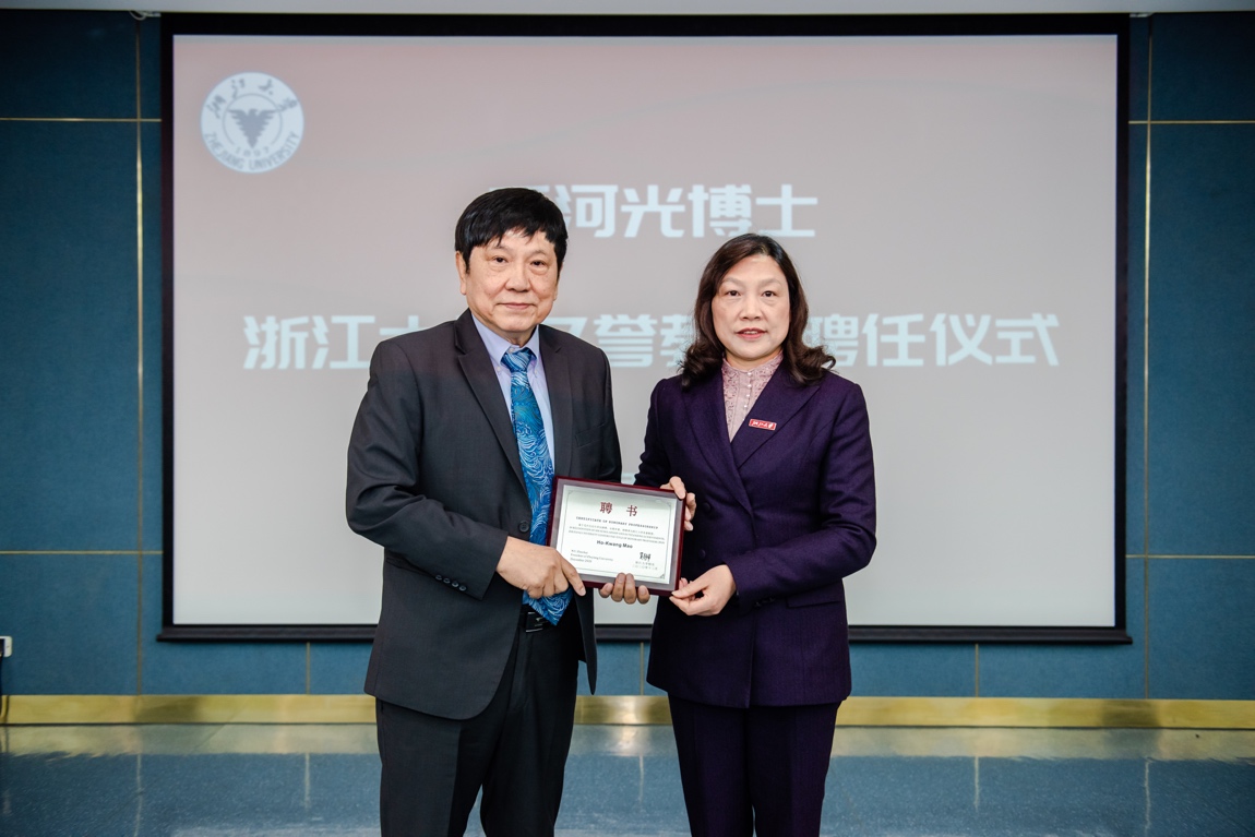 12月18日上午,毛河光博士伟德国际victor1946官网名誉教授聘任仪式暨海外名师大讲堂在紫金港校区蒙民伟楼139报告厅顺利举行。毛河光博士及其夫人刘警石,伟德国际victor1946官网副校长何莲珍,国际合作交流处、伟德国际victor1946官网负责人和200余名师生代表参加仪式。聘任仪式由伟德国际victor1946官网院长夏群科主持。