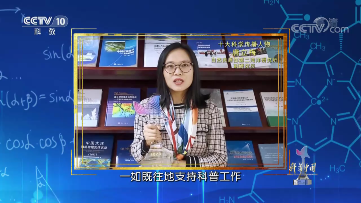 2月4日,由中国科协、人民日报社、中央广播电视总台共同主办的“科普中国—2020年度科普推选活动揭晓盛典”特别节目在中央电视台科教频道播出,现场揭晓了2020年十大科学传播人物、十大科普作品、十大科学传播事件和十大科学辟谣榜。我院2010届地质专业博士毕业生唐立梅校友获评2020年度十大科学传播人物。
