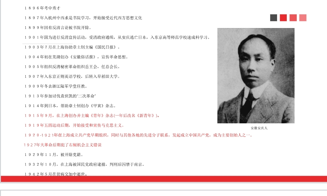 李晨皓同学就安徽名人陈独秀先生进行了介绍。作为五四运动的领军人,中国共产党的创始人之一,他在《新青年》杂志的发刊词中这样写道:人生最可宝贵的时期也,青年之于社会;青年如初春、如朝日,自主的而非奴隶的,进步的而非保守的,进取的而非退隐的。目的就是告诉青年一代必须要改造思想,用民主和科学的方法改变中国。而我们作为新时代中国的新青年,更需要以中华之崛起为己任,以先进的思想武装自己、指导自己,如萤火般,为新时代的社会主义中国的建设,有一分热,发一分光。