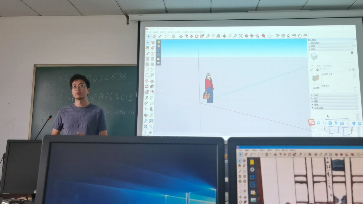 第二天,同学们在SketchUp软件上手动建立精模,并使用Cesium软件完成三维展示。