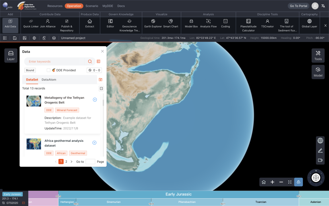 DDE计划在全球六大洲构建服务中心,目前已经部署了法兰克福和香港节点。作为DDE Cloud服务能力向用户输出的载体,DDE平台以终端产品Deep-time.org的形式向用户提供DDE Cloud丰富的在线资源与工具。目前DDE平台已经构建了覆盖122个国家或地区的近30000个机构节点的数据网络与覆盖30多个固体地球科学主要学科的知识体系,以及80余个云原生化的地学分析模型。同时Deep-time.org提供系列支撑软件,满足用户对资源的访问与使用需求。通过这些资源与软件,科学家能够在Deep-time.org完成分钟级洲际尺度矿产资源预测、在线区域古地理图重建全球古地理图等领域应用,也能够基于平台构建了自己专业领域的学科平台。特别地,这些资源、工具、平台全部在FAIR原则的指导下进行建设,以开放状态提供给用户,是开放科学理念的充分实践。