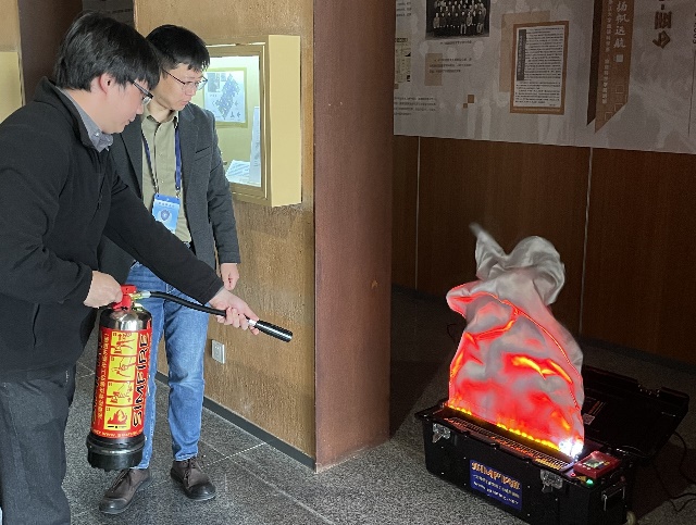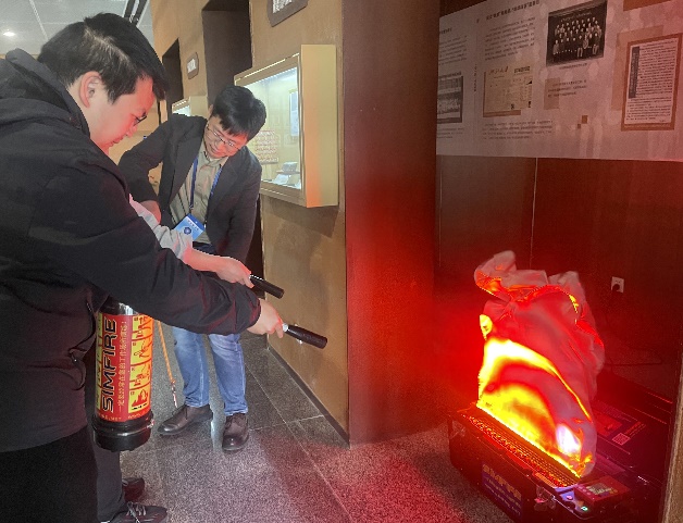演习结束后还在海纳苑1幢1楼大厅进行了消防器械的使用教学,消防安全管理办公室顾冬健主任亲自示范,并指导师生使用电子模拟灭火器。