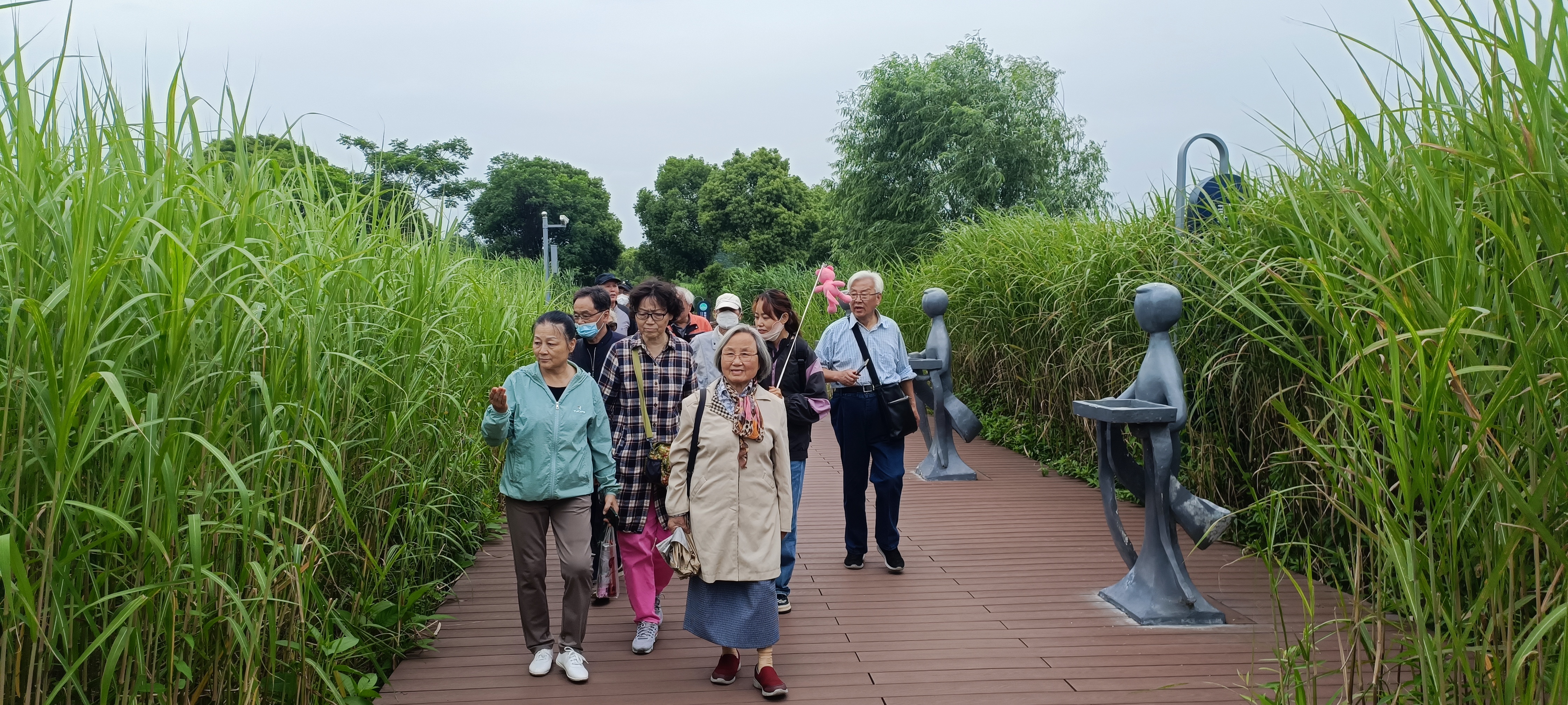 走出学校,退休老师们来到德清下渚湖湿地公园。景区景色秀美,保持原有田野风光,大片芦苇丛翻起一阵一阵绿浪。徜徉在其中,身心舒适,空气甜美。退休老师们在这里陶冶身心,享受初夏好时光。公园里偶遇81级校友,熟识的师生立即合影留念,笑谈中时光彷佛回到在校学习工作的时候了,谈起熟悉的人和事物,退休老师们和校友都开心不已。